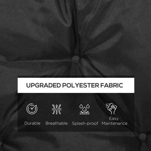 3 Seater Garden Bench Cushion Outdoor Seat Pad with Ties - Black